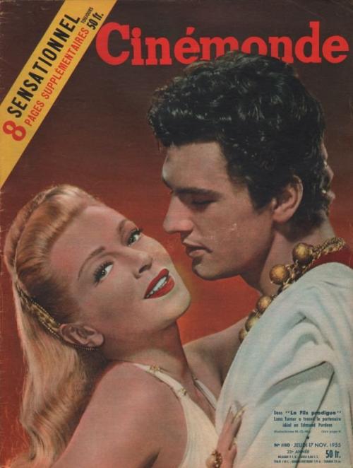 Lana Turner, de son vrai nom Julia Jean Mildred Frances Turner, est une actrice américaine de cinéma. Lana Turner fait partie de la mythologie hollywoodienne. Incarnation du glamour hollywoodien, elle fut pendant près de 20 ans une des stars de la Metro-Goldwyn-Mayer. Elle détient un record pour s'être mariée sept fois. Parmi ses films les plus connus : « Le facteur sonne toujours deux fois » (1946), « Les Trois Mousquetaires » (1948, aventure, avec Gene Kelly), « Les Ensorcelés » (1952, drame, avec Kirk Douglas) ou « Mirage de la vie » (1959, drame). La destinée de Lana Turner a été aussi mouvementée que les scénarios de ses films. Elle n'a que dix ans quand son père, Virgil Turner est assassiné dans une rue de San Francisco. Lana est alors placée dans une institution religieuse avant de revenir rejoindre sa mère, devenue esthéticienne, à Los Angeles. La légende dit qu'un responsable de la revue « Hollywood reporter », Billy Wilkerson, la remarque en 1935, dans un drugstore entrain de déguster un ice-cream, en face de la Hollywood Highschool, où elle suit depuis peu des cours de dactylographie. Il lui suggère de faire du cinéma et l'envoie se présenter aux dirigeants de l'agence de Zeppo Marx. Elle commence à faire de la figuration dans Une étoile est née (1937) de William Wellman, mais surtout elle y rencontre le réalisateur Mervyn LeRoy qui lui donne un second rôle dans le drame social, La Ville gronde (1937). À la demande de LeRoy, la jeune fille se prénomme désormais Lana et se fait surtout remarquer dans ce film par le port d'un sweater qui moule remarquablement ses formes. Grâce à ces pull-overs, trop petits pour elle, on la surnomme « sweater girl », elle devient une idole pour la jeunesse. Elle fera ensuite, deux apparitions dans des films d'époque.